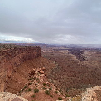 Three hours later we rolled into Moab, UT, got to go lunches from a local deli and headed to Arches National Park only to find that the entrance was closed due to the park being full. After tuning into their radio station and visiting their website we learned the Park would likely open up late afternoon. So, we re calibrated…We drove 30 more miles north to Canyonlands National Park north entrance. On the way, I booked a hotel room for the night in Moab. Even though it was overcast and misting the views at Canyonlands were still spectacular! The kids were relieved that we were skipping the hikes due to the weather, but we did stop at nearly all the overlooks.
